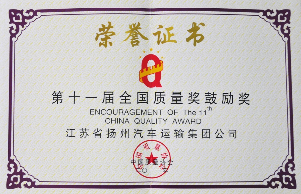 公司喜獲全國質(zhì)量獎鼓勵獎